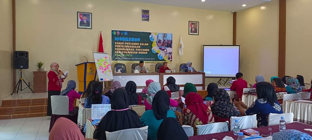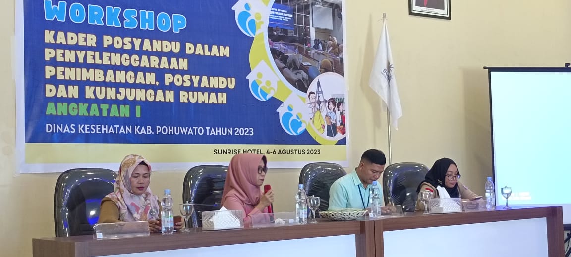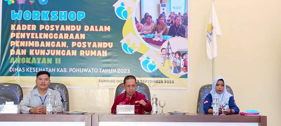 DikesPohuwato – Dinas Kesehatan Kabupaten Pohuwato menggelar workshop bagi kader posyandu dalam penyelenggaraan penimbangan, dan kunjungan rumah untuk angkatan I dan II, yang berlangsung di ballroom Hotel Sunrise, Marisa.