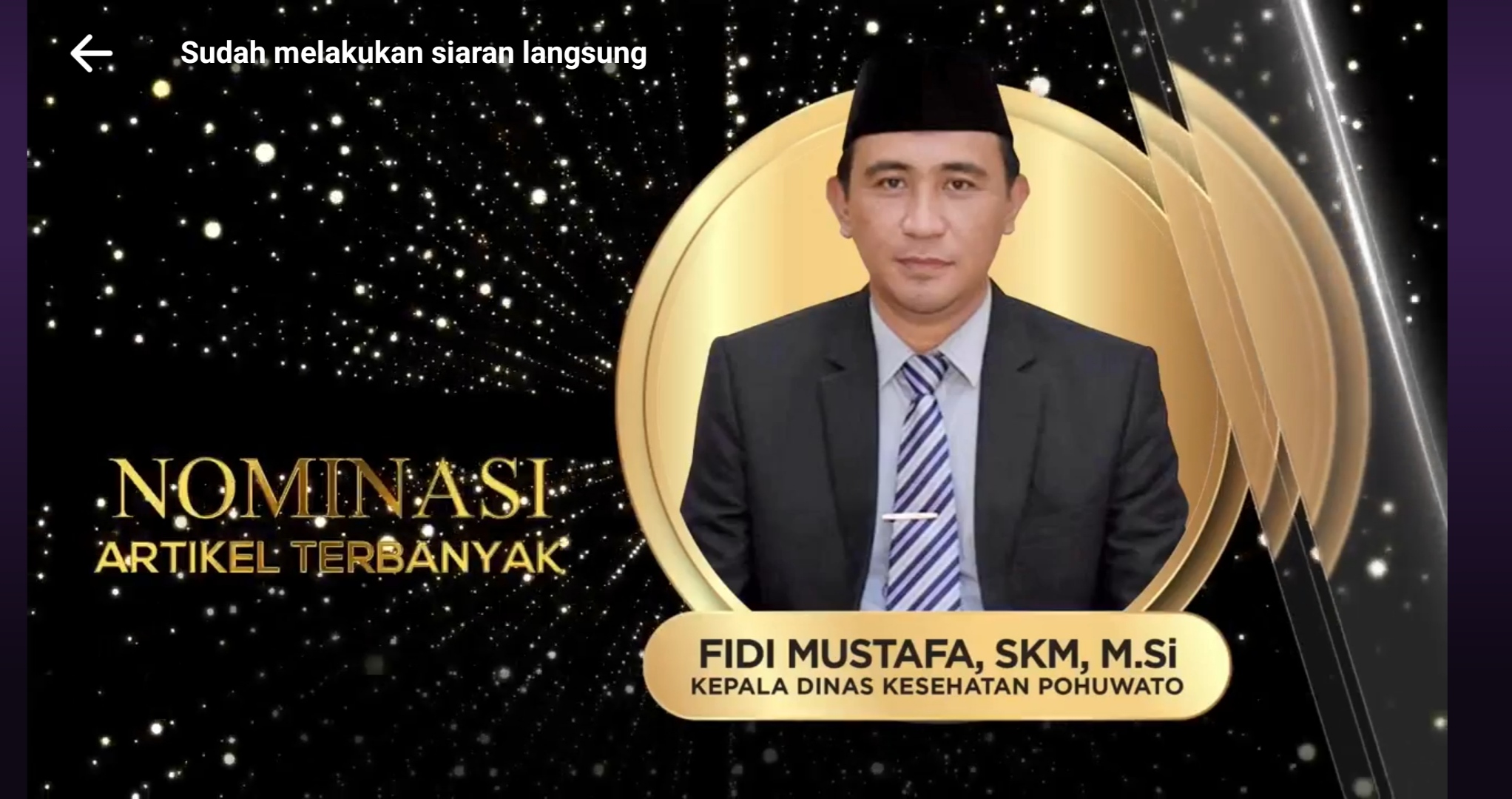 Kepala Dinas Kesehatan Pohuwato, Fidi Mustafa, S.KM.,M.Si., sendiri masuk dan sukses meraih penghargaan AJP Award dalam nominasi birokrat terfavorit dengan kategori jumlah artikel terbanyak, dari para nominator lainnya.