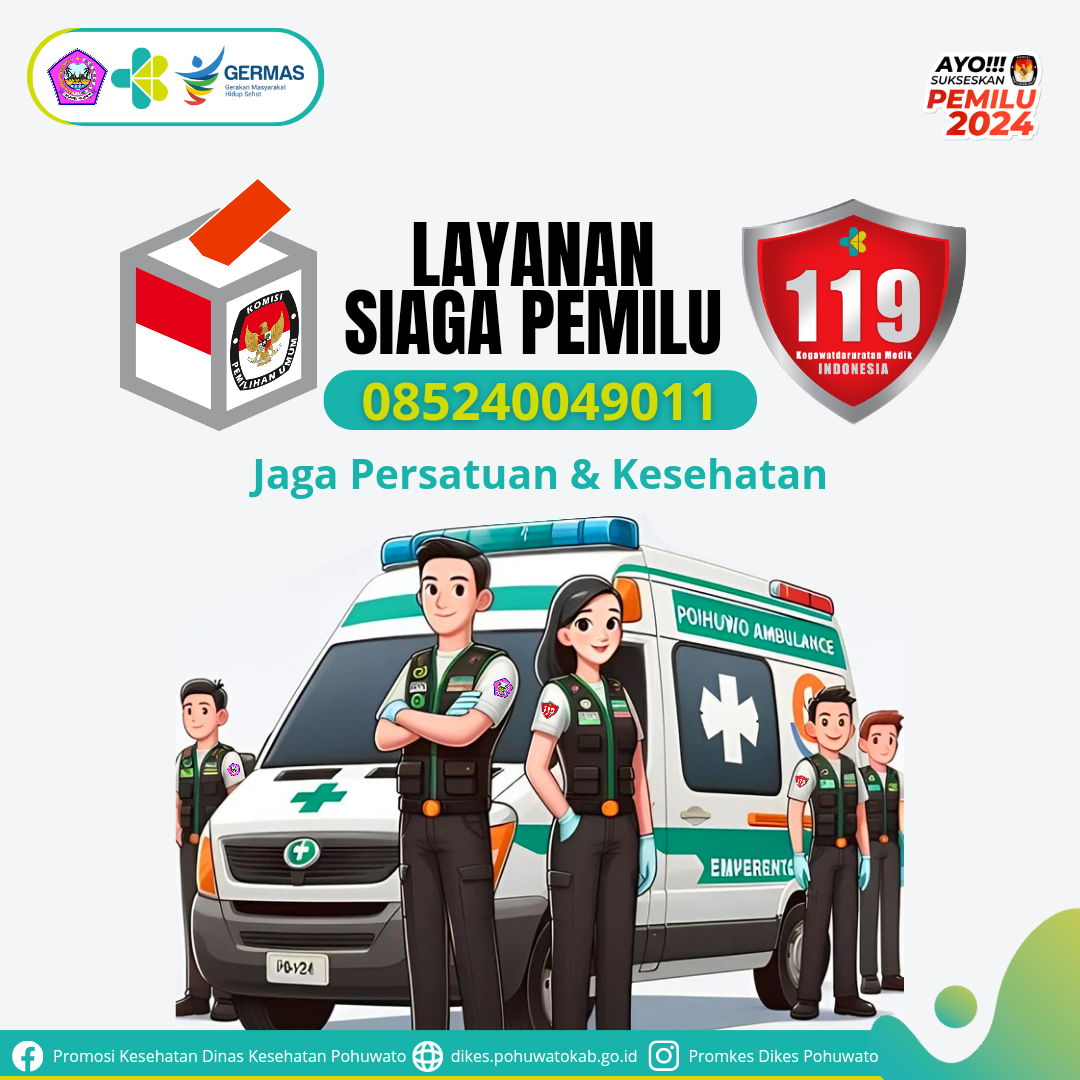 #SahabatSehat, sebentar lagi kita akan menyalurkan hak suara kita melalui Pemilu pada tanggal 14 Pebruari 2024, saat mengalami kondisi kegawatdaruratan kiranya bisa menghubungi hotline Dinas Kesehatan Kabupaten/Kota.