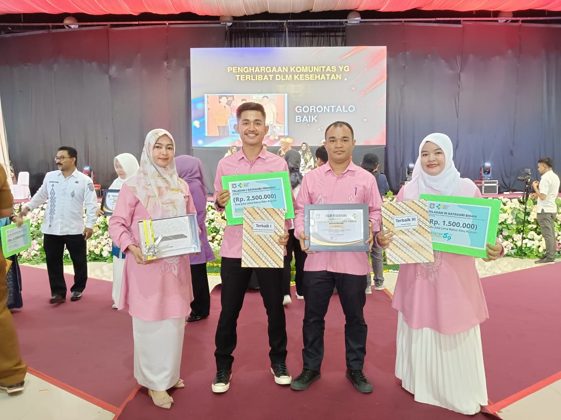 Dan nakes teladan terbaik 1 sebagai Promosi Kesehatan dan Ilmu Perilaku, nakes teladan terbaik 3 sebagai Bidan Kesehatan tingkat Provinsi Gorontalo.