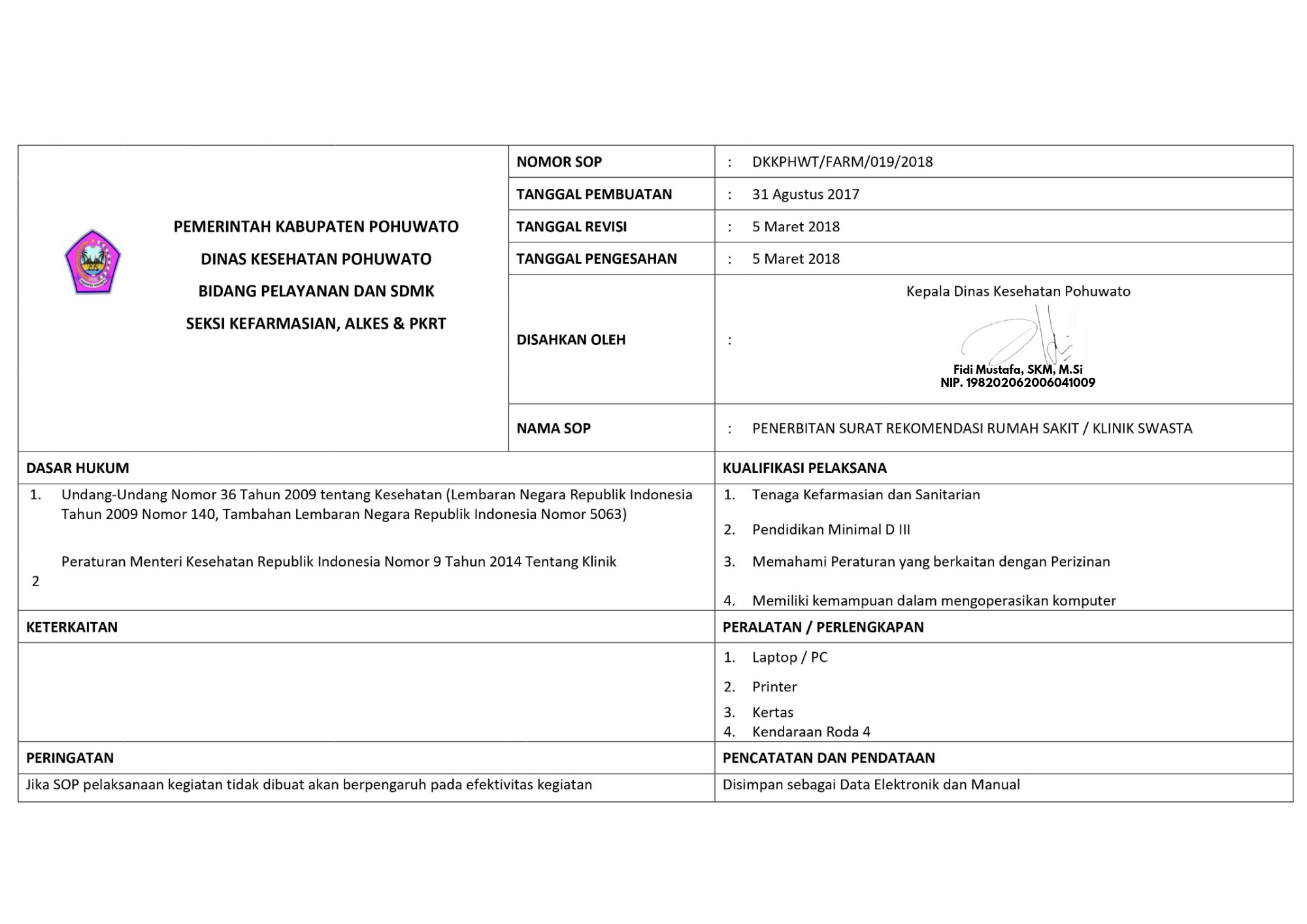 SOP PENERBITAN REKOMENDASI RUMAH SAKIT KLINIK SWASTA