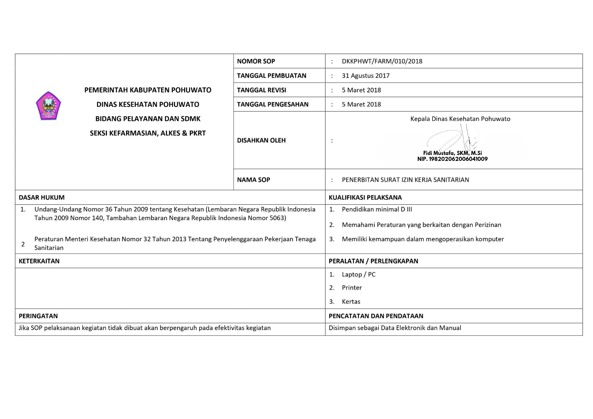 SOP PENERBITAN SURAT IZIN KERJA SANITARIAN