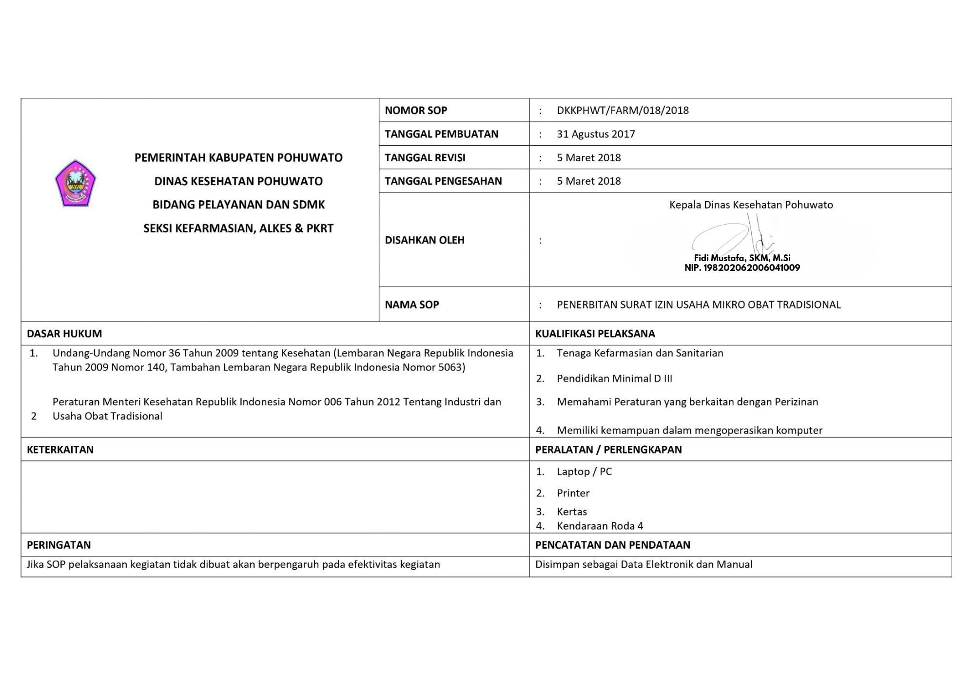 SOP PENERBITAN SURAT IZIN USAHA MIKRO OBAT TRADISIONAL